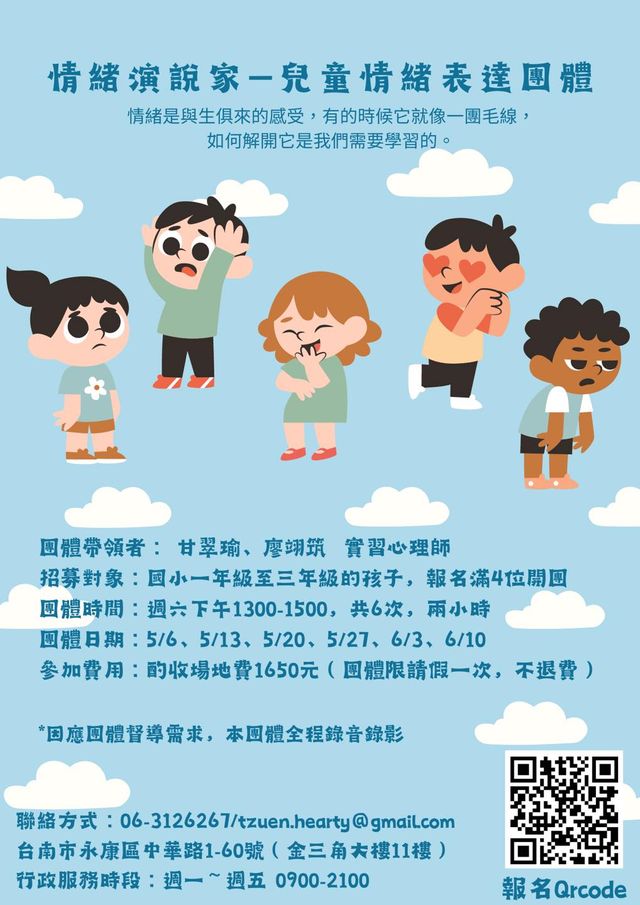 現在,本治療所112年舉辦一個有關於情緒表達的團體,帶領1年級-3年級的孩子學會如何表達自己的情緒和感受。